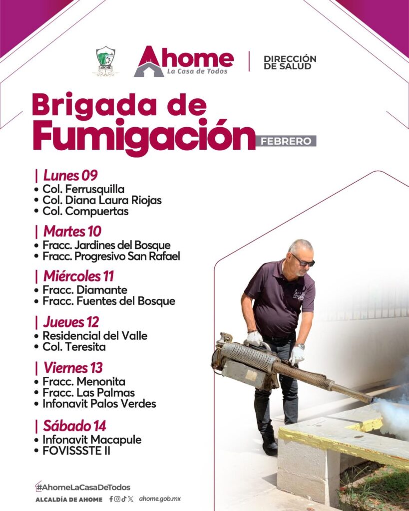 La prevención es la mejor herramienta para proteger la salud de nuestras familias. Durante este mes, el Gobierno Municipal continúa con la Brigada de Fumigación, recorriendo colonias y fraccionamientos de Ahome para reducir la presencia del mosquito transmisor de enfermedades 💪🏽🏡.