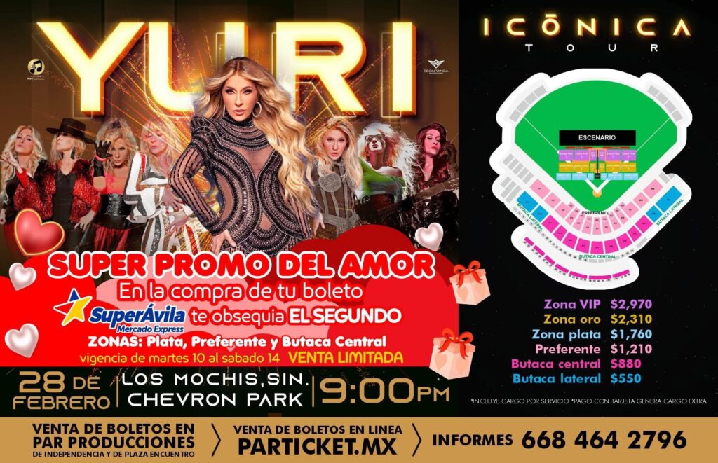 Yuri #IcónicaTour #SuperÁvila #ChevronPark #Conciertos2026 #LosMochis #PARProducciones #PARticket #VortexComunicación