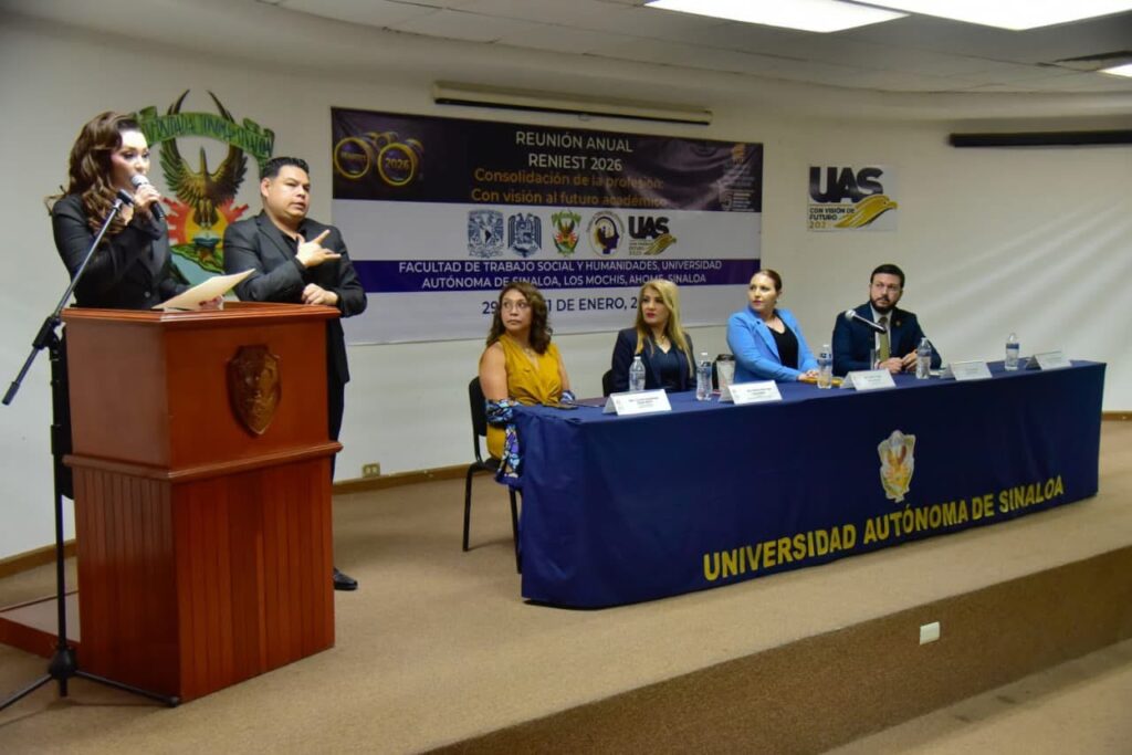 La Universidad Autónoma de Sinaloa, a través de la Facultad de Trabajo Social y Humanidades, dio la bienvenida a especialistas, académicos y estudiantes en la Reunión Anual RENIEST 2026, celebrando 15 años de la Red Nacional de Instituciones de Educación Superior en Trabajo Social